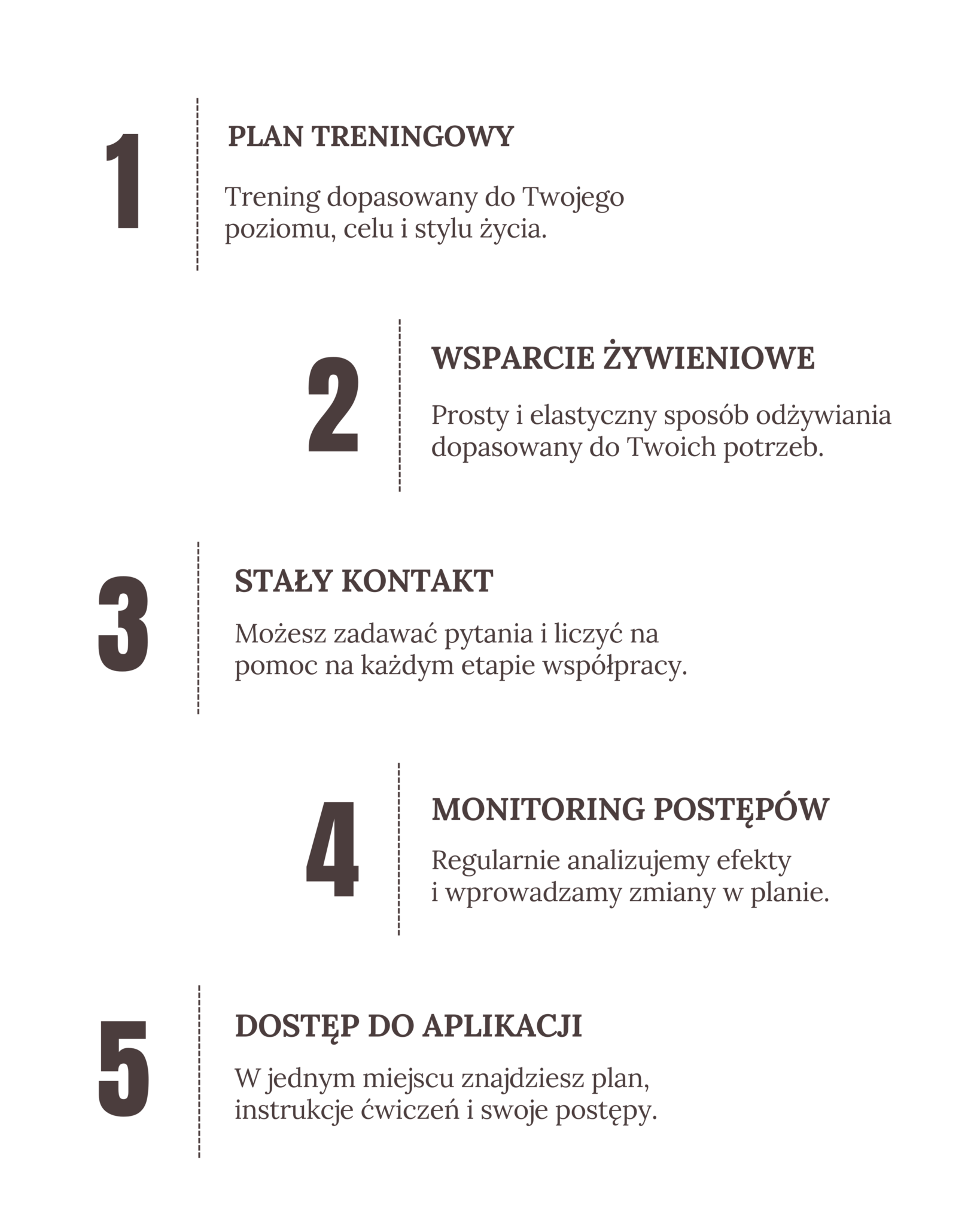 Jestem tutaj po to, aby pomóc Ci nie tylko osiągnąć Twój cel, ale też zbudować zdrową relację z ruchem, swoim ciałem i nowymi nawykami, które zostaną z Tobą na długo.